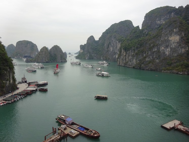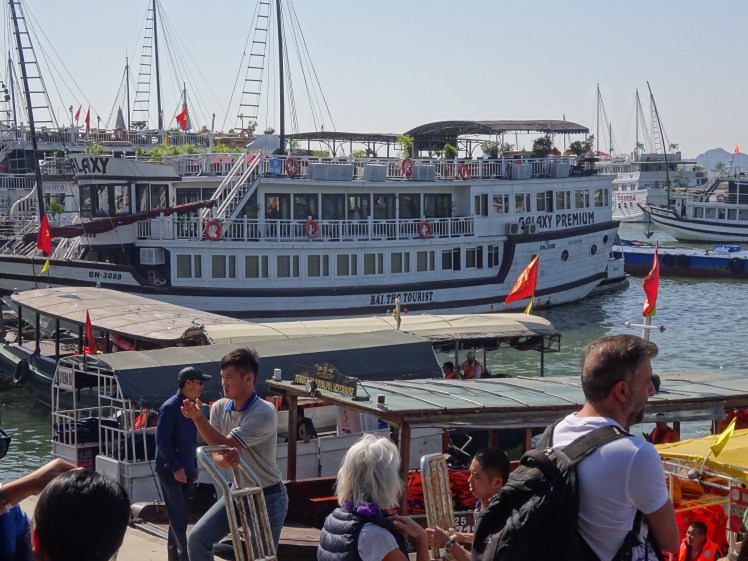 You really have to question whether the Vietnamese have got the balance right in Halong Bay. It’s great that the tourists are coming and spending their cash here, but in these numbers? It’s surely not sustainable. You can see by the water quality in the bay (we didn’t swim in it) that the number of visitors has exceeded its ability to cope either physically or naturally. Cheaper flights, easy access to booking trips via the internet and the growth in Russian and Chinese tourists have all led to a massive increase in numbers. I know we’re adding to the problem, but somehow this explosion in numbers has to be controlled. When it gets like this you end up feeling processed rather than a visitor to a beautiful place.
